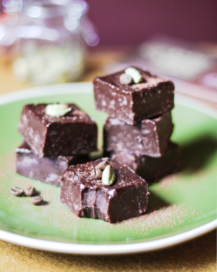 Step 6: Remove the fudge from the freezer and spread with the topping.