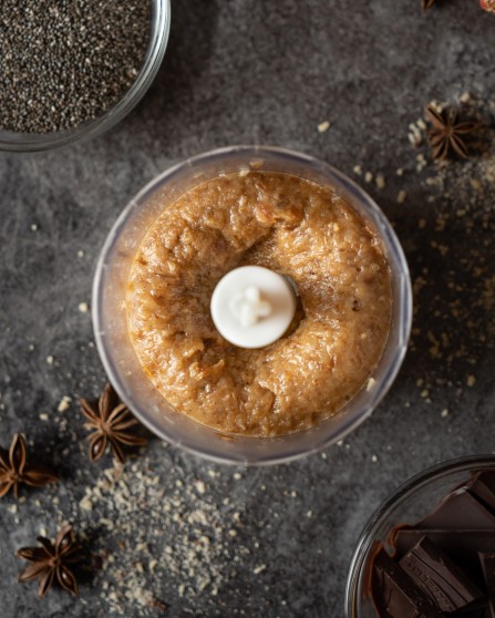 Égoutter et mettre les dattes dans un robot mixeur. Mixer jusqu'à obtenir une pâte lisse. S'il le faut, ajouter un peu d'eau pour faciliter le mixage.