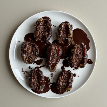 Fill the date with tahini and the melted chocolate.